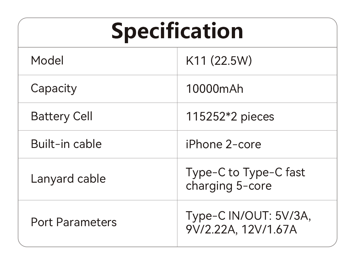 - Built-In Dual Cables – No extra cables needed, ready to charge anytime, anywhere.